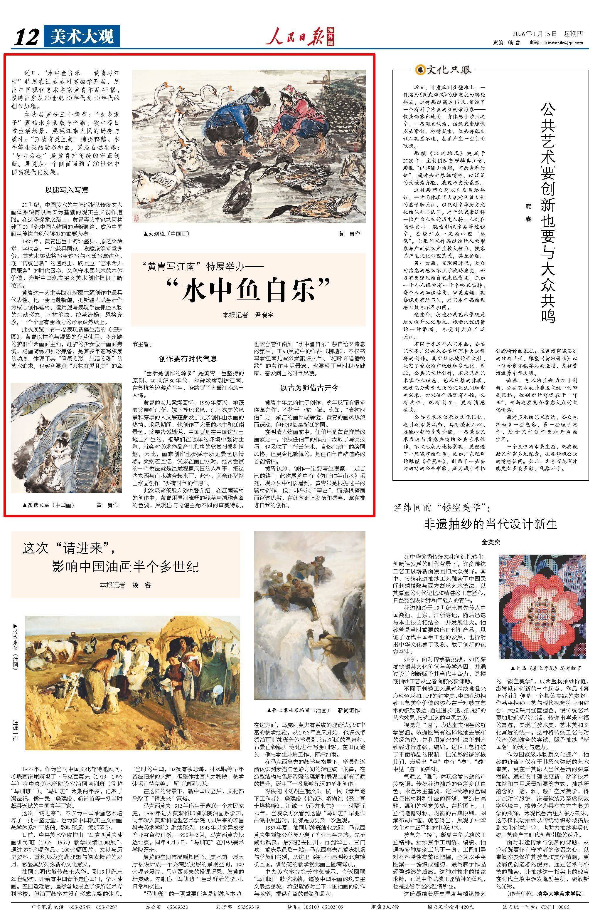 1月15日,《人民日报海外版》第12版版面。