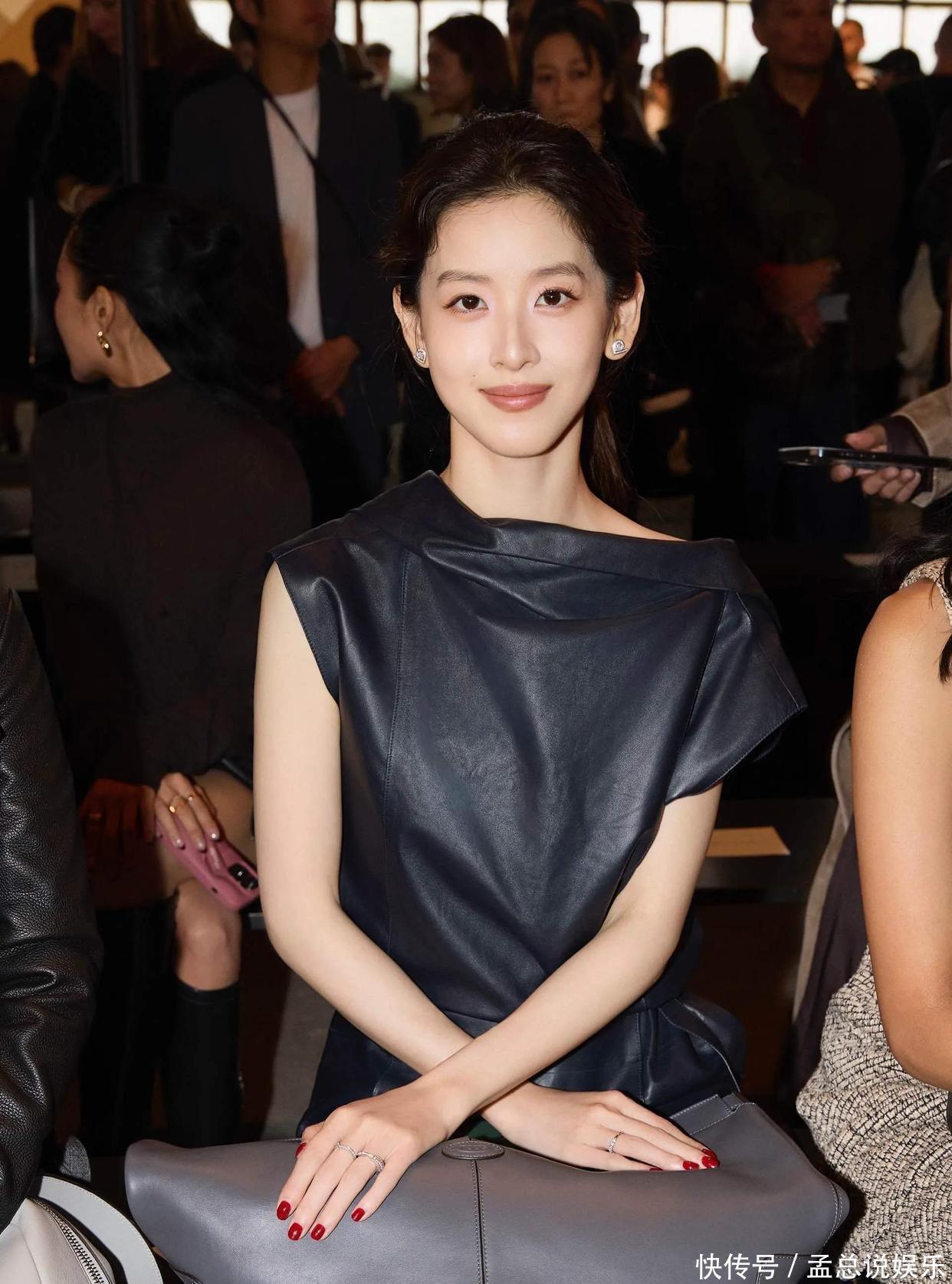 照片中的她穿着藏蓝色外套,头发染成了不张扬的深棕色,将墨镜别在头上,正一脸认真的看着自己手中的电脑。