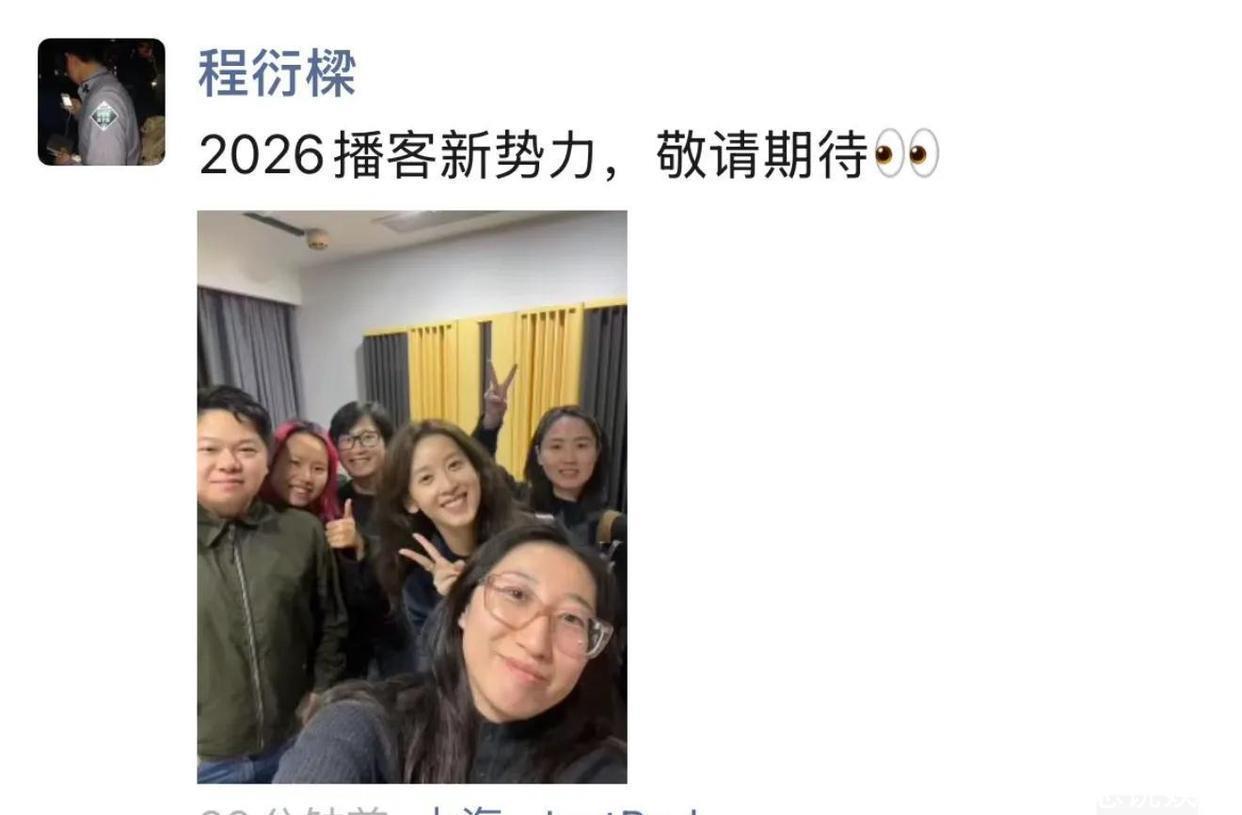 这张照片曝光后,有媒体人晒出和章泽天同框的照片,透露2026年要做播客,希望大家一起期待。